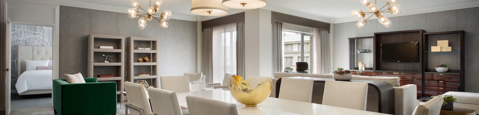Freshly decorated and designed with contemporary elements, our luxuriously spacious one bedroom. Specialty Suites offer a well-designed separate living room, butler’s pantry and powder room.